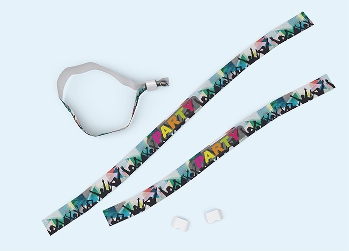 Die Kontrollbänder aus Stoff fühlen sich angenehm leicht und samtig auf der Haut an. So lassen sie sich auch bei mehrtägigen Veranstaltungen bequem ums Handgelenk tragen. Stabil und nahezu unzerreißbar sind sie trotzdem.